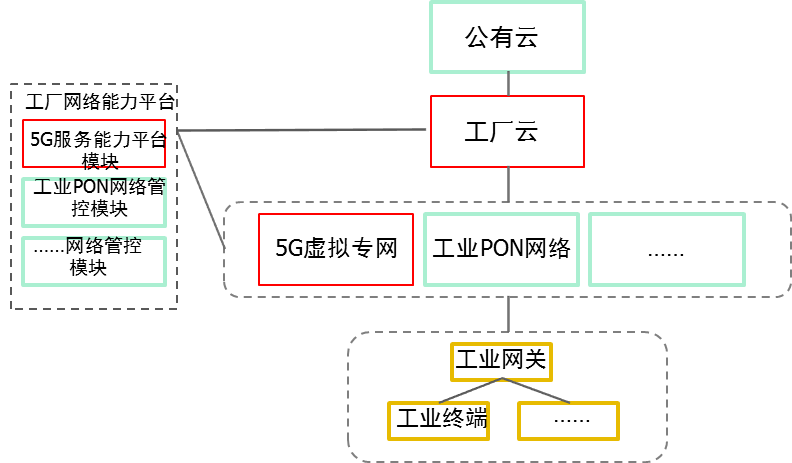 • 全連接云網產品:5G虛擬企業專網+工業PON/其他(紅框+綠框)