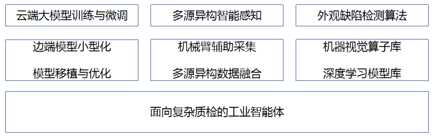 針對高精度模具、汽車零配件等異形件的視覺檢測需求,開展工業(yè)智能體關(guān)鍵技術(shù)研究,主要包括: