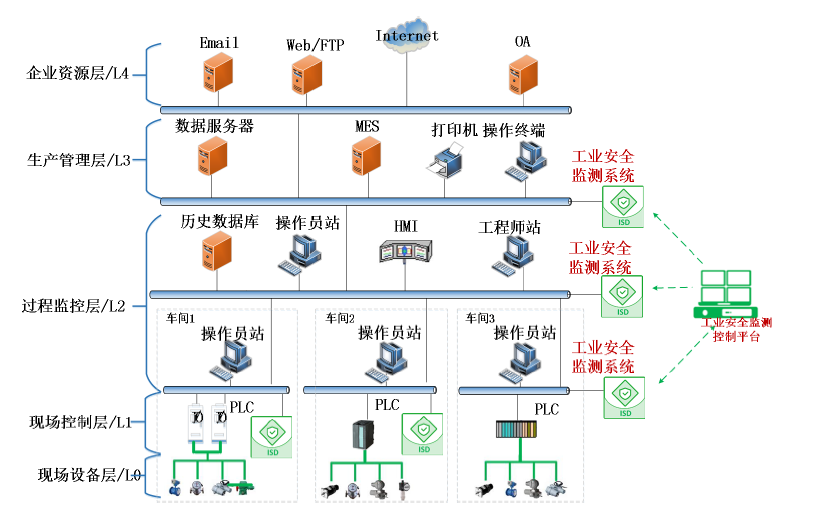 工業安全監測系統(ISD)是針對工控系統網絡環境進行異常監測、威脅發現和安全審計的一體化產品。產品通過旁路方式部署,對工控系統的運行數據進行被動無損采集,實時發現信息安全威脅和其造成的系統運行異常。產品可部署于生產管理層、過程監控層、現場控制層,協助運營人員及時發現問題并響應處理,提升工業生產連續性水平。