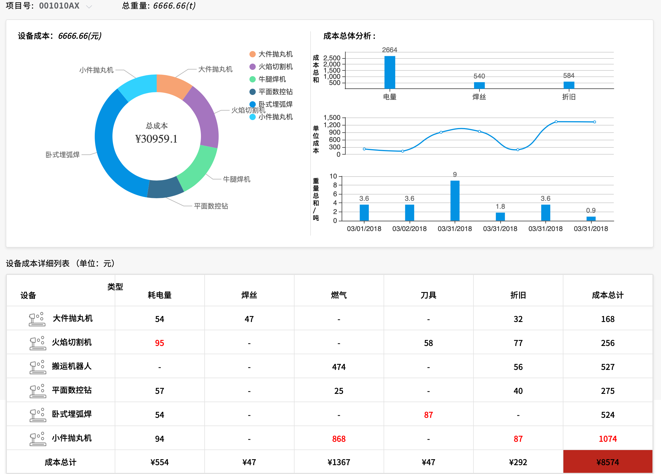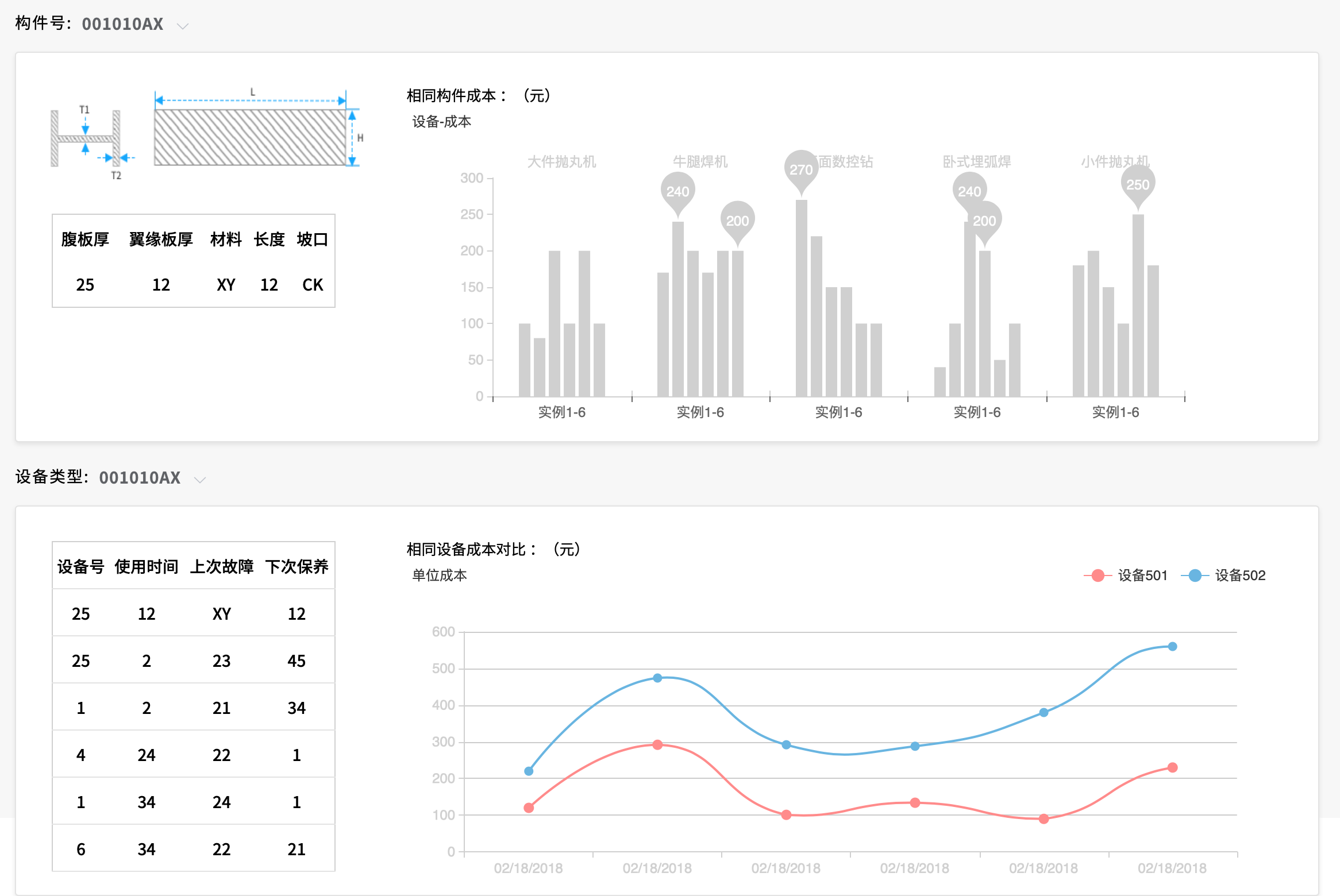 ? 分別以構件、設備為維度進行成本消耗分析,找到高成本設備與高成本構件