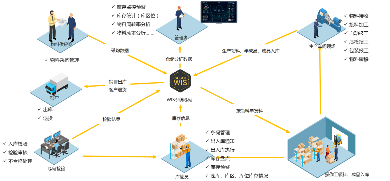 通過應用iSESOL WIS倉儲管理服務實現了物料倉儲管理有序透明,通過PDA掃描進出庫,準確率達到100%,能實時物料庫存查詢,賬目清晰流程規范。同時基于透明供應鏈的管理思想,對供應鏈的物流網絡、資源、訂單、倉庫、運輸配送等進行整體計劃、協調、操作、控制和優化,同時實現供應鏈上下游采購、供應和生產運營的環節的協同,打造具有互聯性、共享性、可視化的透明供應鏈倉儲管理體系。