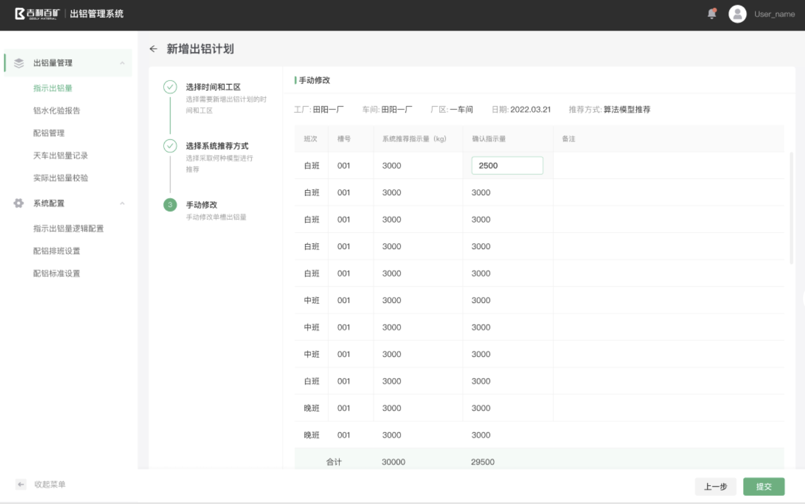 出鋁管理:打通槽控系統和MIS系統,實現出鋁量的智能預測、自動排包、實際出鋁量校正,并根據槽況對指示出鋁量進行智能推薦,減少人工經驗設置出鋁量的偏差問題。