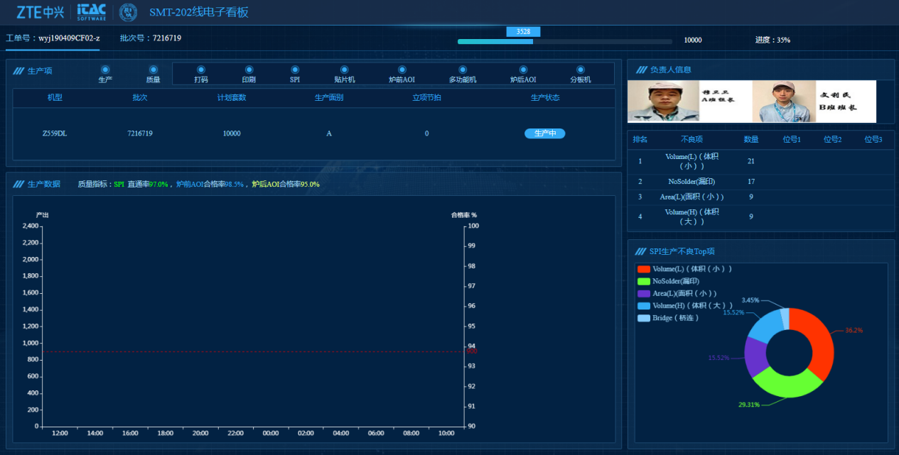 關(guān)鍵工位的采集數(shù)據(jù)都與板號(hào)關(guān)聯(lián),基于設(shè)備實(shí)時(shí)聯(lián)機(jī)實(shí)現(xiàn)產(chǎn)品在制工序全程閉環(huán)制程控制、高精度的單板物料追溯、SPI/AOI檢測(cè)信息追溯、實(shí)現(xiàn)(印刷機(jī)、前后AOI、SPI和整SMT段)良率、直通率的統(tǒng)計(jì)管理,工位的作業(yè)數(shù)據(jù)、生產(chǎn)報(bào)警、故障報(bào)警等等。