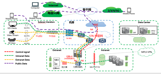 網(wǎng)側:以室分+宏站實現(xiàn)產(chǎn)線覆蓋,并將UPF下沉至園區(qū),實現(xiàn)數(shù)據(jù)的本地處理,滿足安全要求的同時,降低業(yè)務時延。