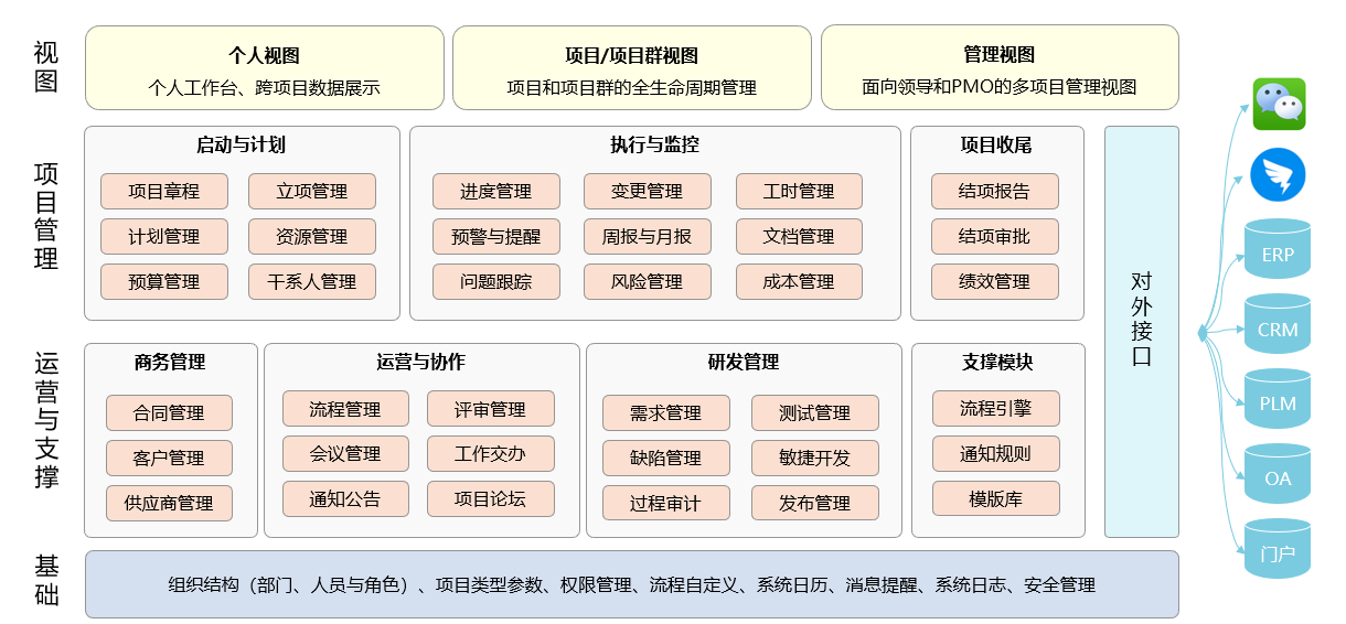 2、 打通項目全生命周期的管理鏈條,覆蓋項目從啟動到計劃,到執(zhí)行,到收尾的全過程。