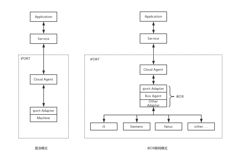 iBox和Machine三個基本部分組成,分為兩種應用模式:直連模式和間接模式(iBox中轉)。