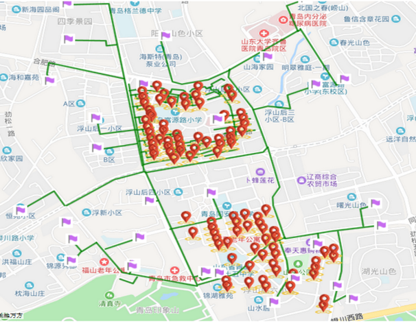 通過建立管道熱損模型,可以分析精確到每條管道的熱損情況。在發(fā)生管道泄漏時(shí),及時(shí)報(bào)警,根據(jù)地理信息系統(tǒng),及時(shí)得到坐標(biāo),避免造成大量損失,如下圖所示。