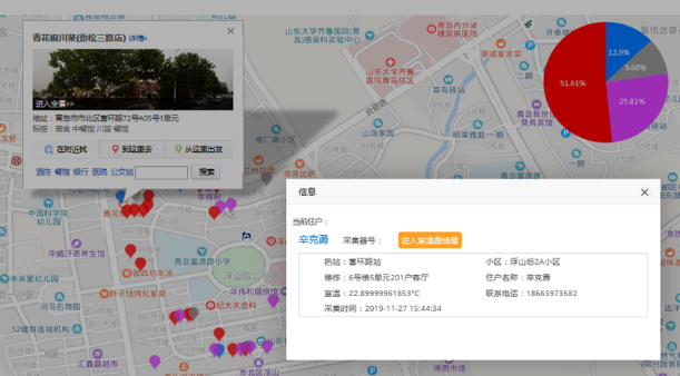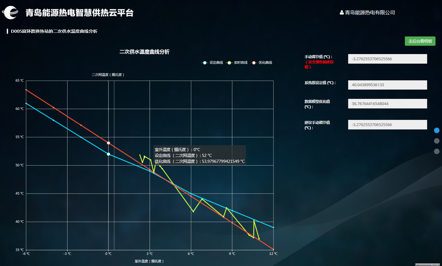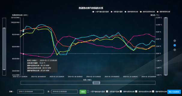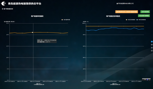 提供室溫合格率與室溫的可視化,通過數(shù)據(jù)脫敏,實(shí)時(shí)監(jiān)測供溫質(zhì)量情況,包括均溫,達(dá)標(biāo)率,有利于運(yùn)行管理粗,如下圖所示。