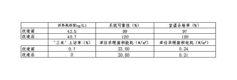 針對30個(gè)換熱站,5臺(tái)鍋爐,供熱面積348萬平方米,通過模型與大數(shù)據(jù)結(jié)合技術(shù),室溫合格率從97%上升到100%,系統(tǒng)可靠性從99%上升到100%,‘三來’上訪率降至0。在保證用戶室溫合格率的基礎(chǔ)上,單位采暖面積平均能耗由23.6W/m2減少到20.8 W/m2,單位采暖面積電耗由0.24W/m2減少到0.22 W/m2,供電耗標(biāo)煤由43.5kg/GJ減少到40.7kg/GJ,取得了明顯的經(jīng)濟(jì)效益,如下圖所示。