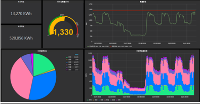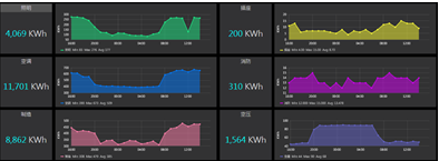 透過電表聯網及區域配置,將能耗使用數據展現在可視化界面,即時發現能耗峰值和谷底、不合理能耗使用率等,消除人為浪費,擴大精實管理效益。