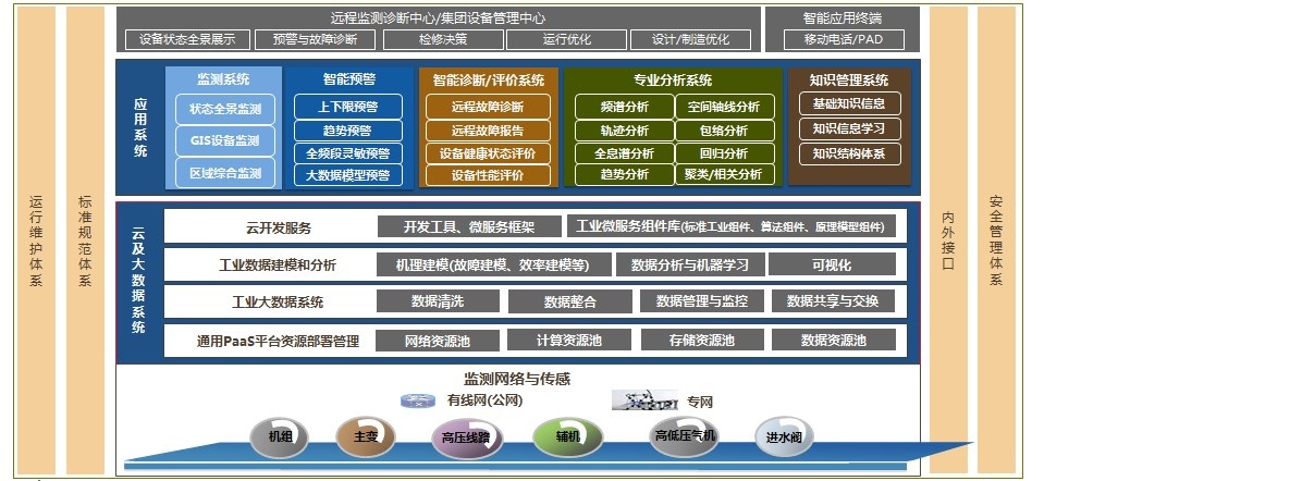 平臺功能包括設(shè)備狀態(tài)的可視化展示、智能預(yù)警與評價、設(shè)備運(yùn)行優(yōu)化指導(dǎo)、檢修決策等。