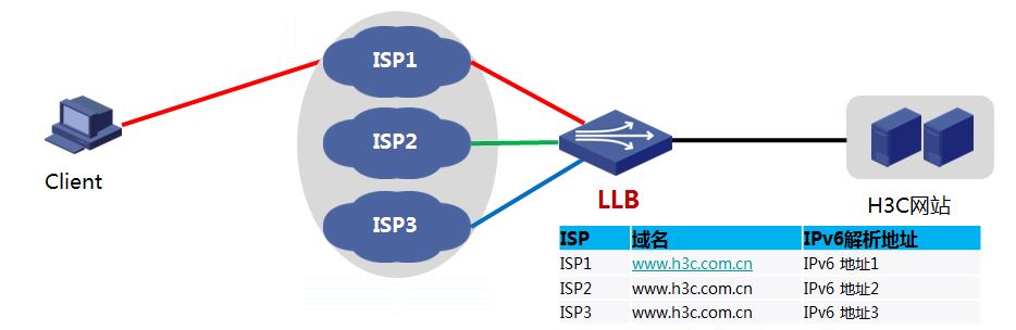 如圖6顯示,部分網(wǎng)站出口會連接多家ISP線路。此種多ISP出口場景下,可使用鏈路負載均衡—Inbound LLB解決DNS解析問題。