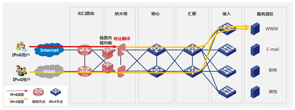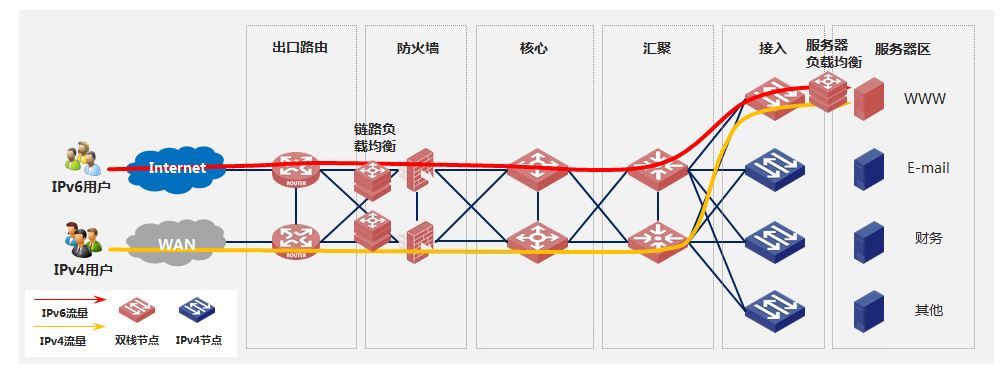 2)新建IPv6服務:不影響原有IPv4服務的情況下,新建IPv6服務平面對外提供IPv6服務。