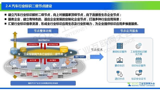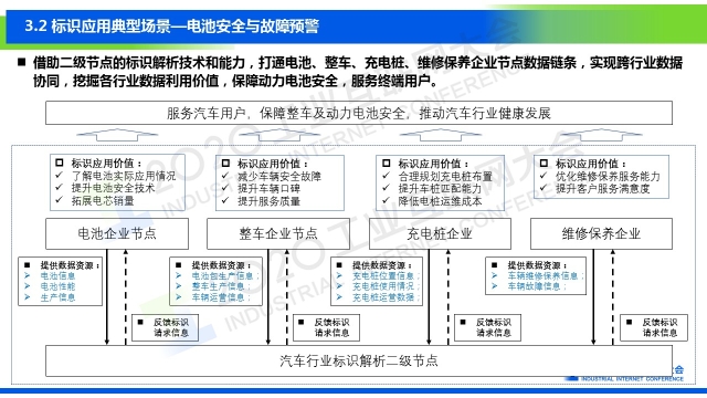“標(biāo)識(shí)解析在汽車領(lǐng)域的應(yīng)用分別為運(yùn)營(yíng)大數(shù)據(jù)的動(dòng)態(tài)標(biāo)識(shí)管理(又稱“車聯(lián)網(wǎng)數(shù)據(jù)”)、電池的安全與故障預(yù)警、電池溯源管理、智能制造或者智慧工廠等四大場(chǎng)景。標(biāo)識(shí)體系目前將重點(diǎn)開展兩個(gè)方面的標(biāo)準(zhǔn):一是應(yīng)用指南類標(biāo)準(zhǔn),包括汽車行業(yè)智能制造標(biāo)識(shí)應(yīng)用指南、二級(jí)節(jié)點(diǎn)技術(shù)規(guī)范、企業(yè)節(jié)點(diǎn)技術(shù)規(guī)范等,均已處于立項(xiàng)階段;二是二級(jí)節(jié)點(diǎn)的建設(shè),包括建立汽車行業(yè)的標(biāo)識(shí)解析二級(jí)節(jié)點(diǎn),對(duì)接國(guó)家頂級(jí)節(jié)點(diǎn),連接各個(gè)企業(yè)的節(jié)點(diǎn),同時(shí)節(jié)點(diǎn)建設(shè)要服務(wù)于企業(yè),整合行業(yè)的相關(guān)資源,助力企業(yè)建立適合企業(yè)自身發(fā)展的定制化節(jié)點(diǎn)。”