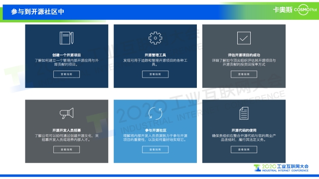 “給大家一些在開源領域層面的建議和思考。第一,項目平臺實現賦能與管理,要提供開源項目代碼托管、備份、交流的工具,通過一些工具來完善并且促進我們開源項目的管理。第二,輔助開源項目管理,要定期關注運營報告,同時要制定社區和整個項目的管理規則。第三,發起開源項目,支持開源項目,要從制定標準、開發工具,一致性認證、性能測評等等方面來推進。最后,開源社區的聯合與推廣,要做到產學研各個層面的聯合。開源不僅僅是源碼的開源,更重要的是我們要做到生態的建設。只有這樣,才能實現開源的真正推廣與落地。