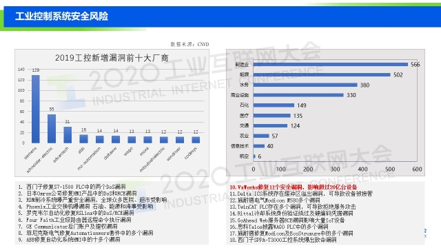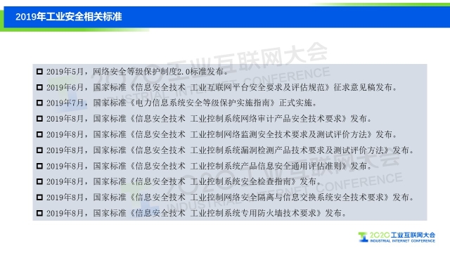 “2019年工業互聯網安全問題主要是四個方面:第一,由于工業主機系統陳舊,工業主機的安全性依然需要重視;第二,工業設備安全性需要提升,包括工業控制系統、物聯網系統、數控機床等,要防范利用工業漏洞的針對性攻擊;第三,工業互聯網平臺安全能力參差不齊,雖說已經發布了相關的平臺安全標準,但大部分工業互聯網平臺企業安全建設尚處于初期,沒有形成完整的縱深的安全防護;第四,由于新技術的應用,比如標識解析系統、5G技術的大量應用,未來可能會有大規模的安全風險,要提前做好安全防范。”