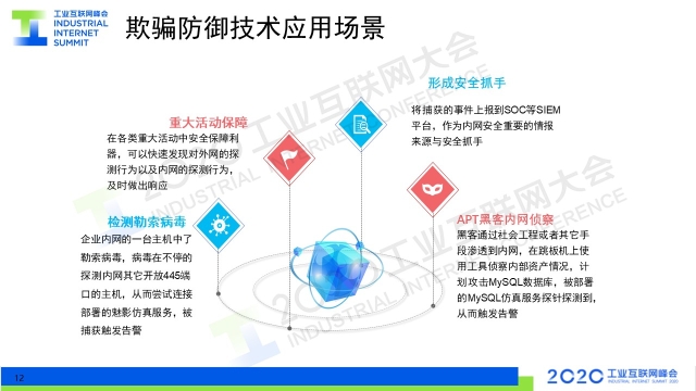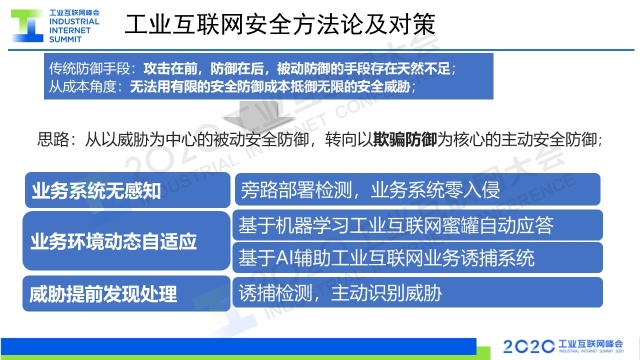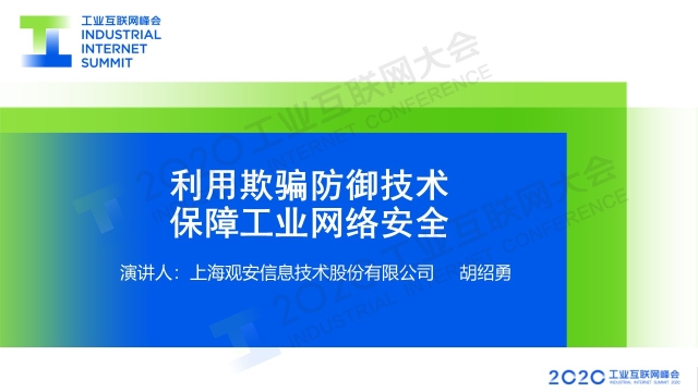 8月30日下午,在2020工業(yè)互聯(lián)網(wǎng)大會(huì)“工業(yè)互聯(lián)網(wǎng)安全”主題論壇上,上海觀安信息技術(shù)股份有限公司副總裁胡紹勇以《利用欺騙防御技術(shù) 保障工業(yè)網(wǎng)絡(luò)安全》為題作演講,分享了以欺騙防御技術(shù)為核心的主動(dòng)安全防御理念。