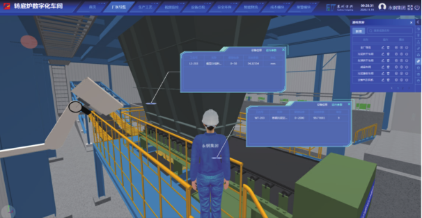 3.3.3 無人智能巡檢如圖6所示,利用可視化技術(shù)可實現(xiàn)“無人點巡檢”。通過創(chuàng)建一名“虛擬員工”,在制定巡檢路線上實現(xiàn)一鍵開啟智能巡檢,代替真人現(xiàn)場巡檢。以“虛擬員工”的視角,在制定好的路線中查看相關(guān)設(shè)備數(shù)據(jù)。“虛擬員工”點巡檢的效率是普通員工的3倍左右,在“虛擬員工”巡檢過程中,只要有一處設(shè)備發(fā)生故障,顯示大屏上就會發(fā)出警報信息,工作人員便能在第一時間發(fā)現(xiàn)問題并迅速采取措施。這不僅可以讓“虛擬員工”按照設(shè)定路線點巡檢,還能讓身處中控室的普通員工通過VR模擬生產(chǎn)的真實環(huán)境,只要帶上VR眼鏡就能實現(xiàn)去任意位置點巡檢。這種“足不出戶”的點巡檢方式,不僅可以讓工廠員工在任意時間“親臨”生產(chǎn)現(xiàn)場對設(shè)備進(jìn)行檢查,還能在保證安全的前提下,有效降低安全培訓(xùn)成本。