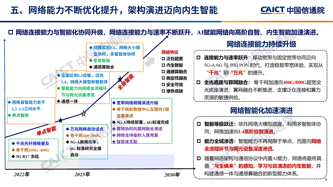 五、網(wǎng)絡(luò)能力不斷優(yōu)化提升,架構(gòu)演進邁向內(nèi)生智能