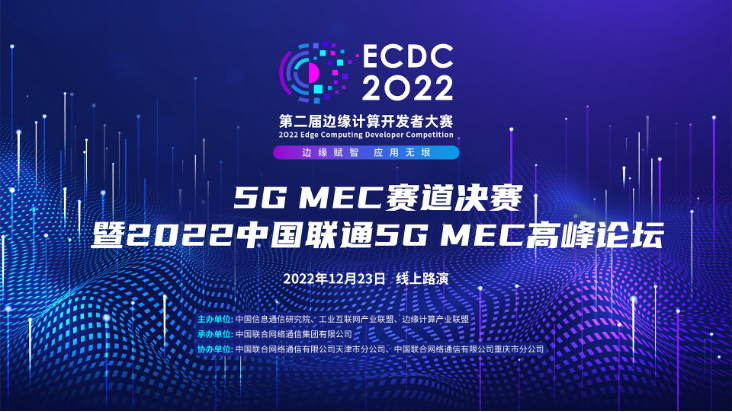 2022年12月23日,第二屆邊緣計算開發者大賽(ECDC 2022)“5G MEC”賽道決賽暨2022中國聯通5G MEC高峰論壇以線上形式成功舉辦。本次活動由中國信息通信研究院、工業互聯網產業聯盟、邊緣計算產業聯盟共同主辦,中國聯合網絡通信集團有限公司承辦,中國聯合網絡通信有限公司天津市分公司、中國聯合網絡通信有限公司重慶市分公司協辦。來自中國信通院、中國聯通、重慶朗維機電有限公司、網絡通信與安全紫金山實驗室等單位的領導、行業專家、參賽成員等共同參與了本次活動。