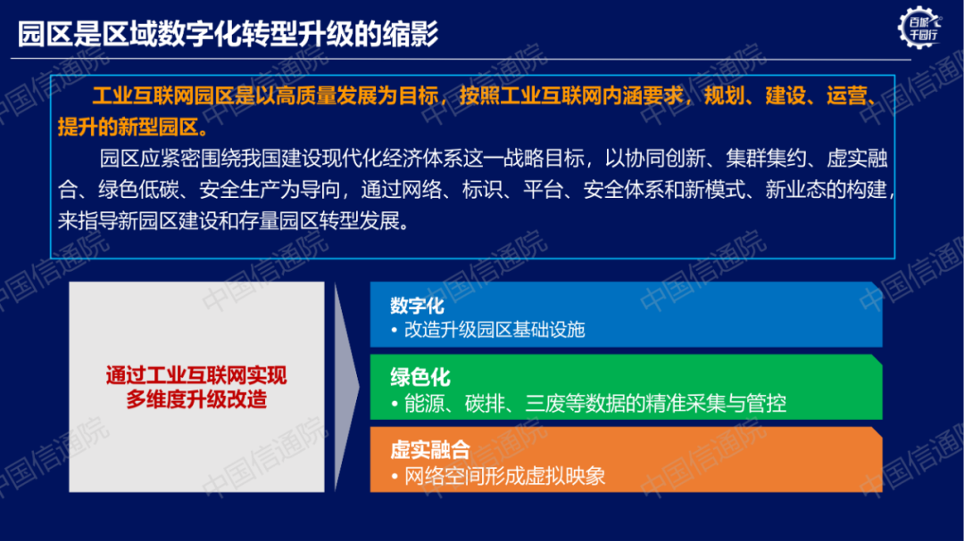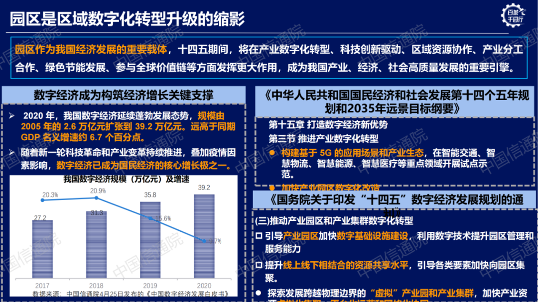1.  園區數字化轉型是促進我國數字經濟發展的重要戰略。隨著新一代信息技術與實體經濟的深度融合,園區正在加速數字化轉型發展,通過引入工業互聯網,實現園區數字化、綠色化、虛實融合多維度升級改造。