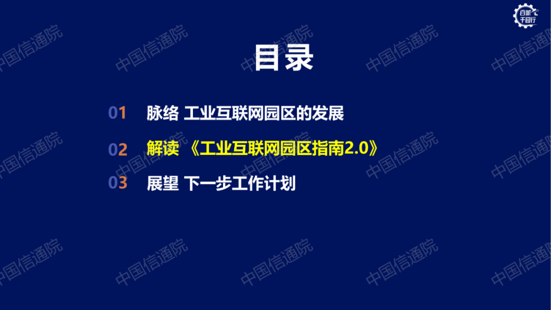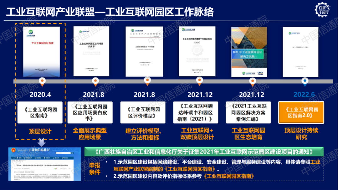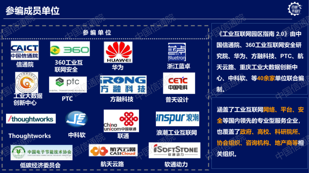 2023年1月9日,《工業互聯網園區指南(2.0版本)》在2023 ICT+深度觀察報告會—工業互聯網“百城千園行”分論壇上正式發布。發布會現場,中國信息通信研究院(以下簡稱“中國信通院”)院長、工業互聯網產業聯盟理事長余曉暉為指南發布進行致辭。余曉暉表示希望指南2.0的更新發布可以為工業互聯網園區的建設和發展提供更加科學、清晰和可操作的指導,為園區轉型和數字經濟發展注入新的活力。image.png