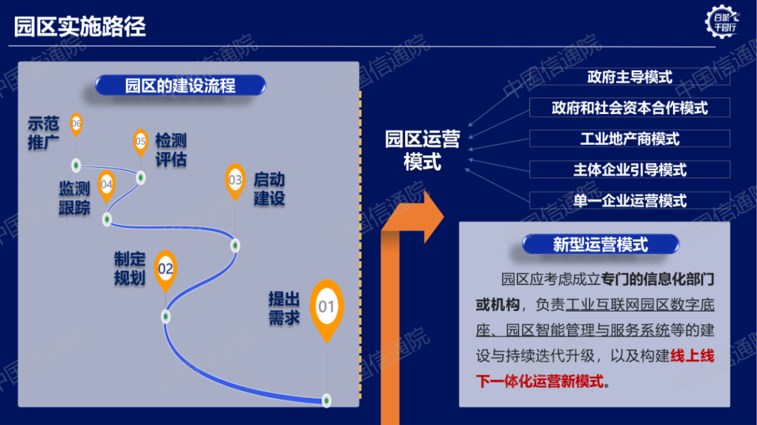 6. 工業互聯網園區對園區運營者信息化服務水平、專業水平提出了非常高的要求,在傳統園區運營模式基礎上,園區應考慮成立專門的信息化部門或機構,負責工業互聯網園區數字底座、園區智能管理與服務系統等的建設與持續迭代升級,以及構建線上線下一體化運營新模式。