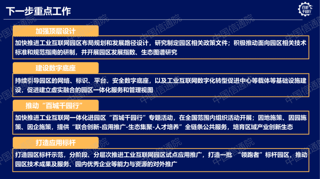 3. 工業互聯網園區的建設原則:統籌規劃,突出特色;園區主導,政府引導;遵循規律,創新驅動;減碳降耗,綠色發展;開放發展,安全可靠