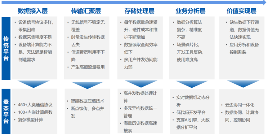麥杰工業(yè)互聯(lián)網(wǎng)云邊協(xié)同平臺(tái)是集嵌入式、云計(jì)算、邊緣計(jì)算、互聯(lián)網(wǎng)、容器化、工控技術(shù)于一體的數(shù)據(jù)集成平臺(tái);同時(shí)打造軟硬件緊密結(jié)合的數(shù)據(jù)接入終端,提供各種數(shù)據(jù)類型以及各種接口協(xié)議的接入標(biāo)準(zhǔn)化組件,結(jié)合平臺(tái)云邊協(xié)同能力打通數(shù)據(jù)鏈路,快速整合數(shù)據(jù)資源,并挖掘內(nèi)在價(jià)值,讓生產(chǎn)數(shù)據(jù)獲取和處理不再困難;讓不懂IT技術(shù)的人員也能快速搭建專業(yè)應(yīng)用。