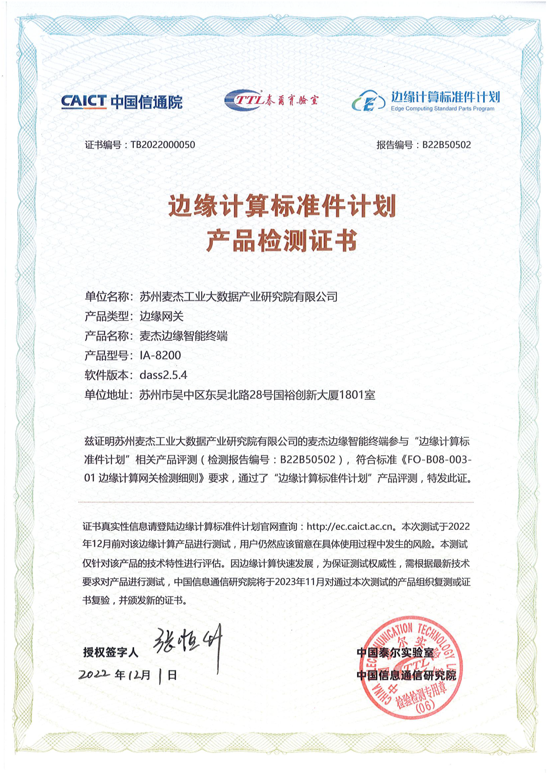 經(jīng)過中國信息通信研究院集中測(cè)試,蘇州麥杰科技股份有限公司自主研發(fā)的麥杰云邊協(xié)同平臺(tái)、麥杰邊緣智能終端順利通過“邊緣計(jì)算標(biāo)準(zhǔn)件計(jì)劃”產(chǎn)品評(píng)測(cè),并且在多個(gè)領(lǐng)域?qū)嶋H應(yīng)用部署和持續(xù)穩(wěn)定運(yùn)行,助力各行業(yè)企業(yè)應(yīng)用升級(jí),推動(dòng)數(shù)字化建設(shè)落地。