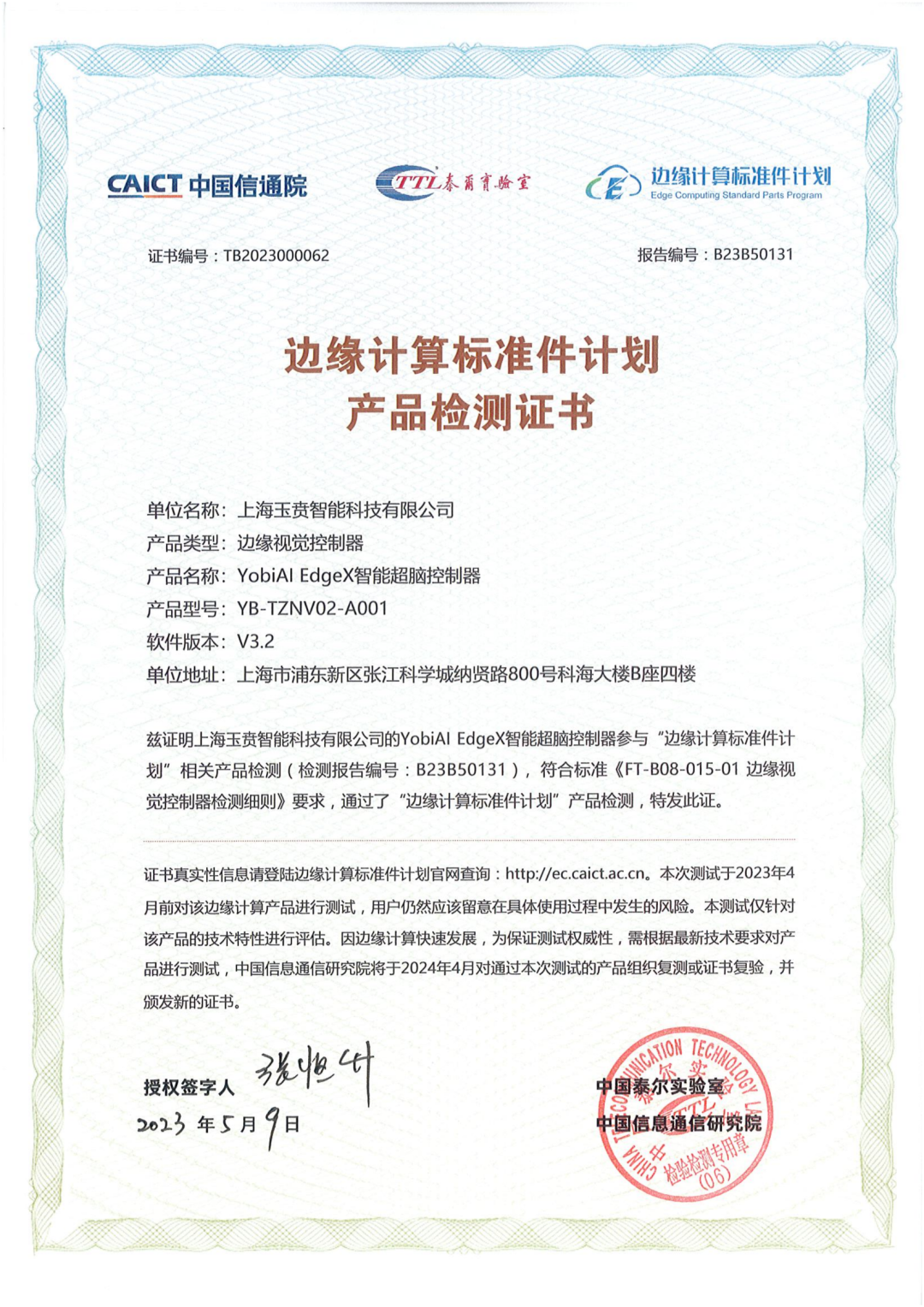 “邊緣計算標準件計劃”證書