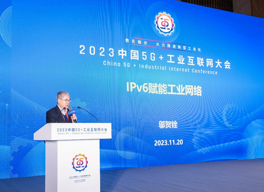 鄔賀銓做了題為“IPv6賦能工業(yè)網(wǎng)絡(luò)”的主旨演講。鄔院士從工業(yè)互聯(lián)網(wǎng)組成、網(wǎng)絡(luò)體系架構(gòu)、網(wǎng)絡(luò)協(xié)議等工業(yè)網(wǎng)絡(luò)現(xiàn)狀入手,系統(tǒng)介紹了IPv6+技術(shù)特點(diǎn),并從便捷性、靈活性、兼容性、開放性、可靠性、安全性等方面分析IPv6+賦能工業(yè)網(wǎng)絡(luò)。鄔院士的演講為我國推進(jìn)IPv6在工業(yè)互聯(lián)網(wǎng)的應(yīng)用發(fā)展提供了指導(dǎo)。