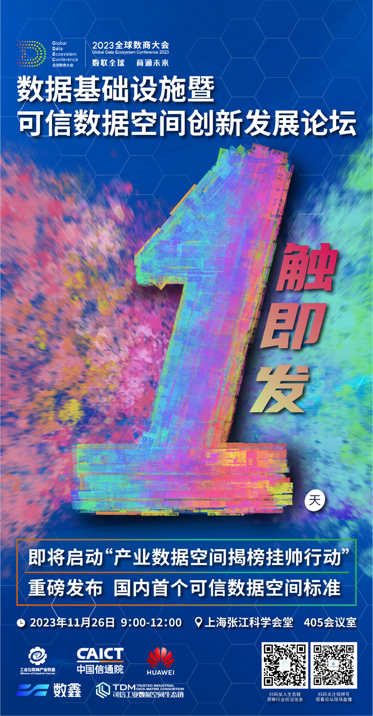 11月26日,由工業互聯網產業聯盟、可信工業數據空間生態鏈、華為云、數鑫科技、上海市工業互聯網協會等單位共同舉辦的2023全球數商大會-數據基礎設施暨可信數據空間創新發展論壇即將召開。論壇期間將重磅發布國內首個可信數據空間標準,“產業數據空間揭榜掛帥行動”將于論壇發布環節啟動,敬請關注!