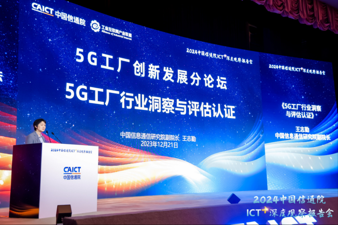 2023年12月21日下午,“2024中國信通院ICT深度觀察報告會”5G工廠創(chuàng)新發(fā)展分論壇在北京成功舉辦。本次論壇以“5G工廠 智造未來”為主題,由中國信息通信研究院(以下簡稱“中國信通院”)主辦,工業(yè)互聯(lián)網(wǎng)產(chǎn)業(yè)聯(lián)盟、互聯(lián)網(wǎng)與工業(yè)融合創(chuàng)新工業(yè)和信息化部重點實驗室承辦。工業(yè)和信息化部信息通信管理局一級巡視員王鵬、中國信通院副院長王志勤出席,中國信通院技術與標準研究所副所長湯立波主持。