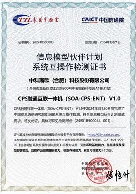 中科斯歐是工業(yè)互聯(lián)網產業(yè)聯(lián)盟信息模型伙伴計劃伙伴單位,自主研發(fā)的CPS融通互聯(lián)一體機順利通過中國信通院組織的“信息模型伙伴計劃”系統(tǒng)互操作檢測。