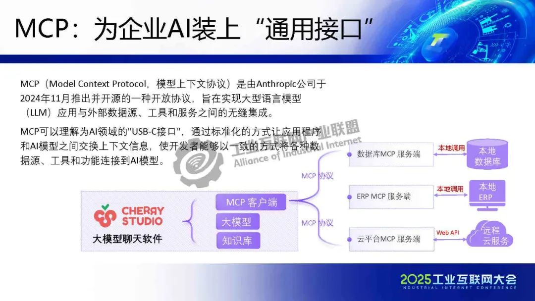 5月22日,在2025工業互聯網大會“人工智能與工業互聯網融合創新發展專題活動”上,理工比特林克(蘇州)軟件信息技術服務有限公司技術總監賀松發表了《MCPFLow:構建工業互聯網AI應用的連接器與創新生態》的主題演講。