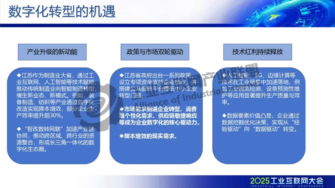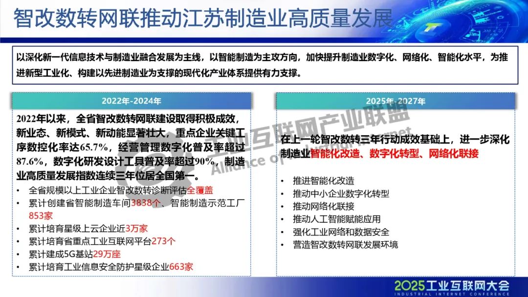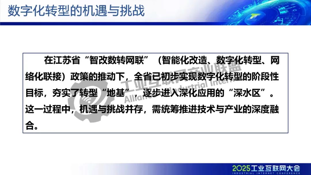 5月21日,在2025工業(yè)互聯(lián)網(wǎng)大會(huì)“工業(yè)互聯(lián)網(wǎng)產(chǎn)融合作專題活動(dòng)”上,江蘇省經(jīng)濟(jì)和信息化研究院副院長趙海建發(fā)表了《工業(yè)互聯(lián)網(wǎng)賦能江蘇制造業(yè)實(shí)現(xiàn)數(shù)字化轉(zhuǎn)型》的主題演講。