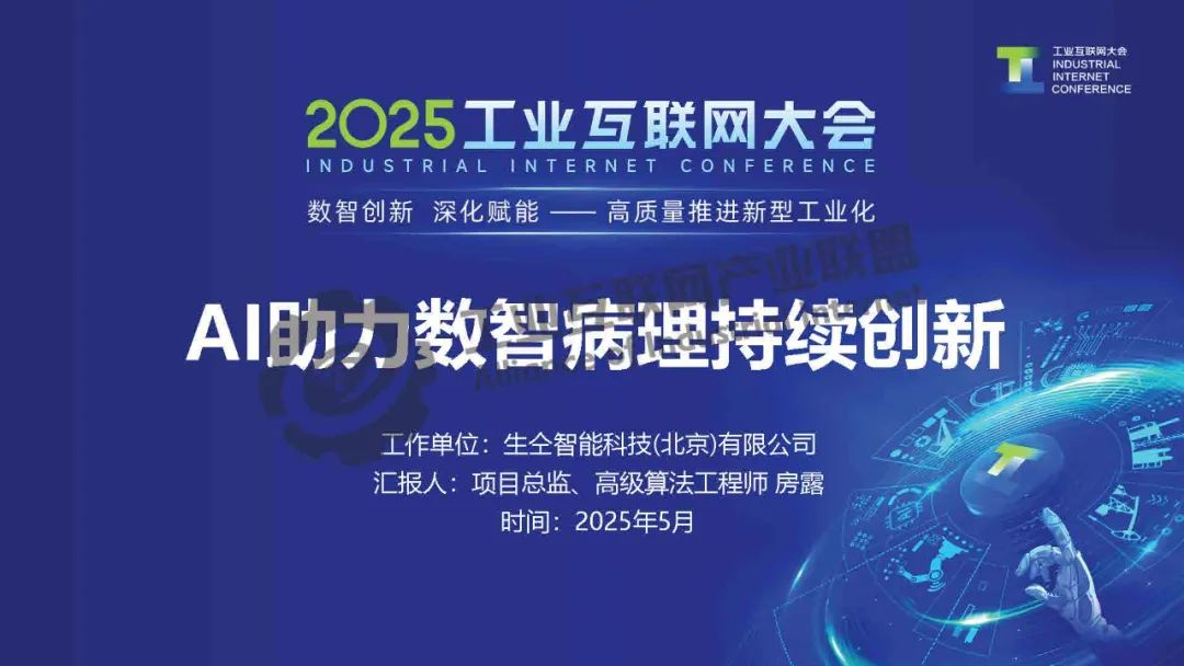 5月21日,在2025工業互聯網大會“工業互聯網產融合作專題活動”上,北京生仝智能科技有限公司項目總監房露發表了《AI助力數智病理持續創新》的主題演講。