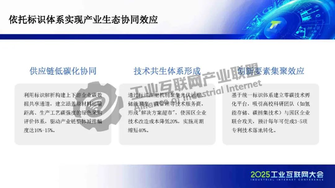 在園區(qū)建設(shè)方面,標(biāo)識(shí)體系作為工信部推動(dòng)全行業(yè)互聯(lián)互通的核心基礎(chǔ)設(shè)施,承擔(dān)著打破行業(yè)壁壘、賦能企業(yè)數(shù)字化升級(jí)的重要使命。一方面,依托標(biāo)識(shí)體系,可以為企業(yè)、產(chǎn)品和設(shè)備賦予統(tǒng)一、可信的數(shù)字身份,實(shí)現(xiàn)數(shù)據(jù)的精準(zhǔn)溯源與全流程管理,為能源效率提升和碳資產(chǎn)增值管理提供有力支撐,從而釋放園區(qū)運(yùn)營成本優(yōu)化空間。另一方面,標(biāo)識(shí)體系有助于打通企業(yè)內(nèi)部及產(chǎn)業(yè)鏈上下游的信息壁壘,破解數(shù)據(jù)孤島,進(jìn)一步提升供應(yīng)鏈的低碳協(xié)同效率。