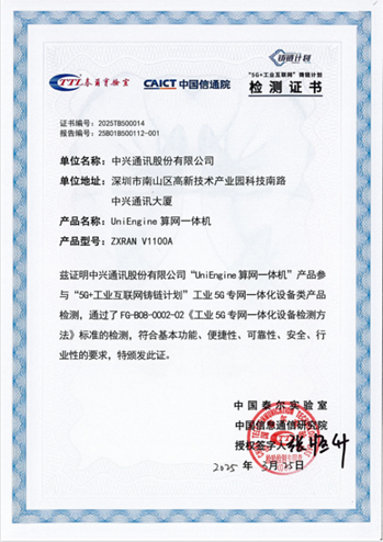 近日,中興通訊的UniEngine算網一體機ZXRAN V1100A產品順利通過第一批“5G+工業互聯網”鑄鏈計劃產品測試,測試內容涵蓋基礎功能、操作便捷性、可靠性、安全性及行業適配性五大維度等方面。