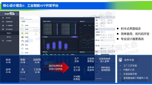 “藍卓希望為客戶打造一個面向工業的操作系統。打個比方,把一個工廠看成是一個智能手機,這樣一個智能手機有很多硬件、軟件,工廠的人機料法環就是它主要的硬件、零部件。為了支撐這樣的工廠智能化運行,需要有很多智能化的軟件或者原來一些傳統的信息化軟件,比如ERP、OA、BI、SCM、PLM這樣一些軟件,在這個硬件和軟件之間需要有這么一個工業安卓平臺,它是能夠向上承載這樣一些應用,向下互聯各種硬件;從總體的技術層面來看,它是一個非常典型的基于數據和業務互聯的、基于云架構的數字工業大腦。”