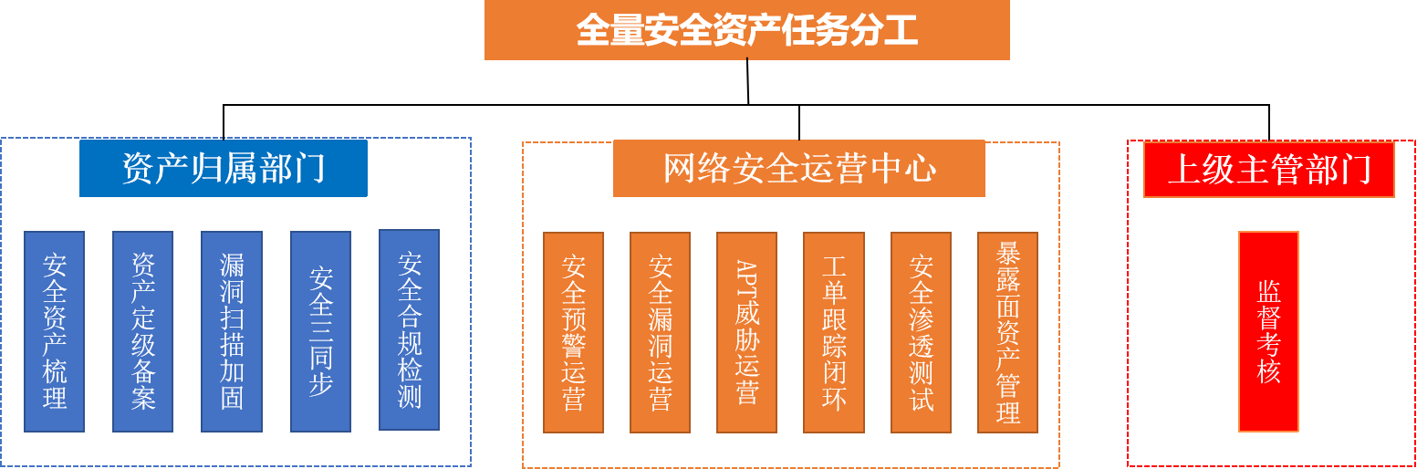 面向互聯網暴露面資產,開展資產的統籌管理與報備更新,資產歸屬部門負網絡安全主體責任,網絡安全運營中心集中開展掃描滲透與預警跟蹤,上級主管部門負責監督考核。各部門協作,嚴格落實網絡安全相關工作要求。