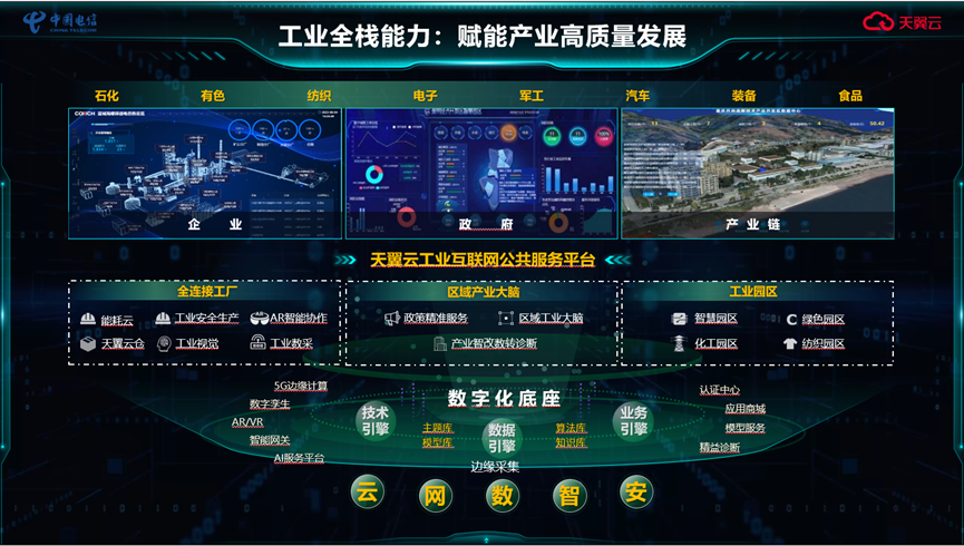 在智慧園區(qū)展區(qū),中國(guó)電信為工業(yè)各行業(yè)搭建的智慧園區(qū)平臺(tái)、產(chǎn)業(yè)大腦、化工園區(qū)平臺(tái)也將集體亮相。其中,智慧園區(qū)平臺(tái)以互動(dòng)系統(tǒng)的形式展示中國(guó)電信通過(guò)數(shù)據(jù)中心、邊緣云等結(jié)合智能云網(wǎng),為園區(qū)引入工業(yè)互聯(lián)網(wǎng)技術(shù)和理念進(jìn)行建設(shè)、改造和升級(jí),并利用基于數(shù)據(jù)的平臺(tái)賦能園區(qū)的高質(zhì)量發(fā)展;產(chǎn)業(yè)大腦平臺(tái)提供診斷類(lèi)型總覽、診斷項(xiàng)目進(jìn)度、服務(wù)商診斷進(jìn)程、診斷需求管理等多維度數(shù)據(jù)看板,實(shí)現(xiàn)診斷過(guò)程實(shí)時(shí)監(jiān)控跟蹤,助力管理部門(mén)實(shí)時(shí)摸排轄區(qū)內(nèi)診斷服務(wù)進(jìn)展、計(jì)劃和成效;智慧化工園區(qū)平臺(tái)則推進(jìn)了信息共享、上下貫通,及科技創(chuàng)新、工業(yè)互聯(lián)網(wǎng)產(chǎn)業(yè)生態(tài)、安全生產(chǎn)在園區(qū)內(nèi)外滲透及融合發(fā)展,實(shí)現(xiàn)了不同企業(yè)、不同部門(mén)、不同層級(jí)之間的協(xié)同聯(lián)動(dòng),助力化工園區(qū)安全高質(zhì)量發(fā)展。