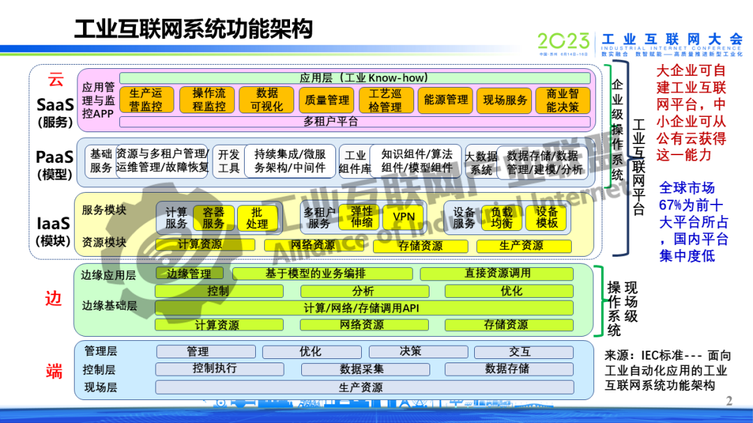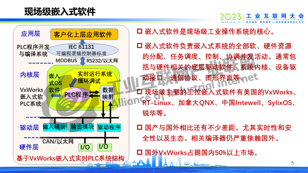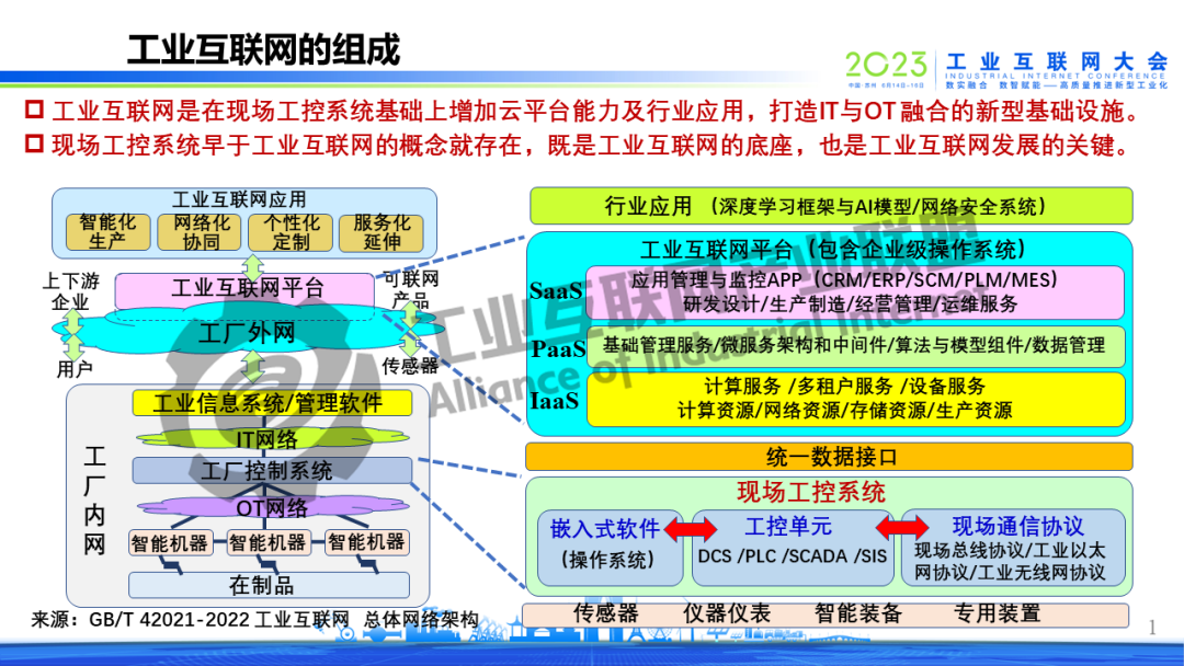 6月16日上午,在2023工業(yè)互聯(lián)網(wǎng)大會開幕式上,中國工程院院士鄔賀銓以《夯實工業(yè)互聯(lián)網(wǎng)的底座》為題作演講,指出工業(yè)互聯(lián)網(wǎng)個性化主要表現(xiàn)在現(xiàn)場級,重點與難點在現(xiàn)場級工控系統(tǒng)。政府引導垂直行業(yè)龍頭牽頭開發(fā)現(xiàn)場級工控系統(tǒng)的統(tǒng)一標準,當前可從各類現(xiàn)場級工控系統(tǒng)標準的最大公約數(shù)入手開發(fā)并推薦兼容標準,明確新增市場采用統(tǒng)一標準。抓工業(yè)CPU開發(fā),以5G工業(yè)模組為抓手,推動軟硬結(jié)合、IT/OT的融合,建立新型現(xiàn)場級工控系統(tǒng)生態(tài)。