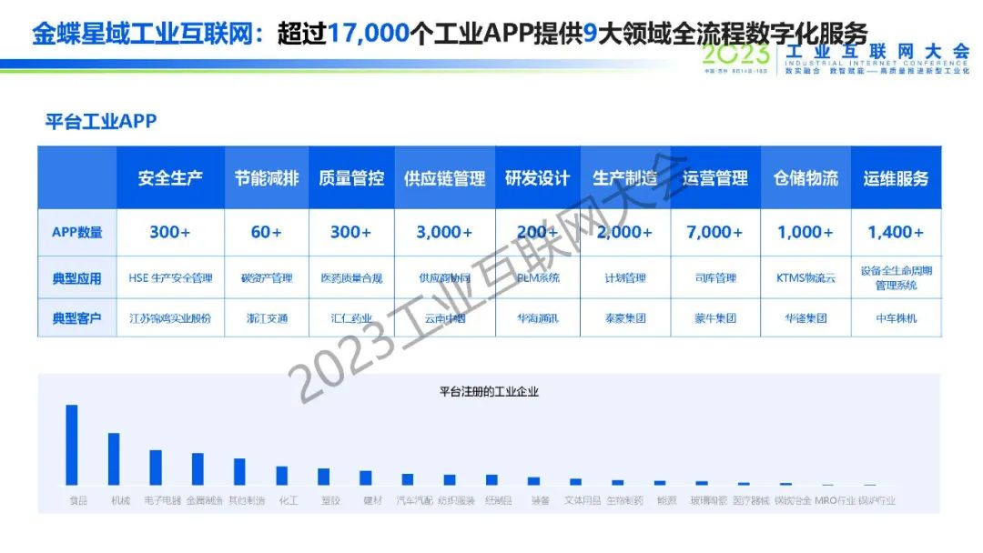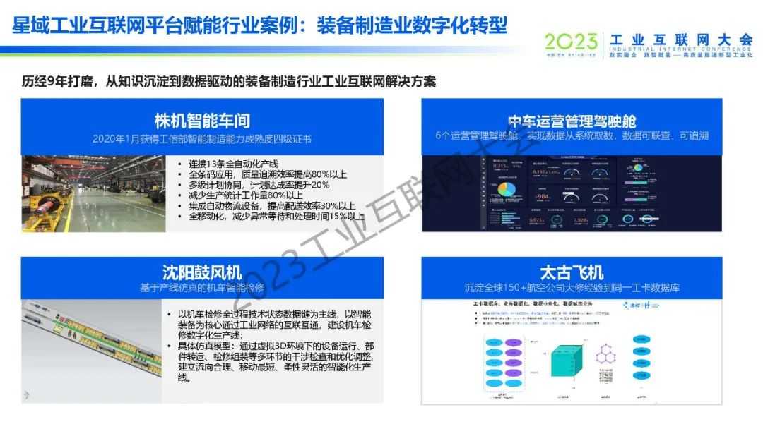 “工業互聯網正在推動大型企業,尤其是頭部領航企業向全要素、全流程、全生態數字化發展。金蝶升級發布的星域工業互聯網平臺,在支撐大型企業產業鏈供應鏈數字化創新方面具備獨特優勢,在裝備制造行業已成功賦能中車株機、太古飛機、沈陽鼓風機等大型企業數字化轉型升級。“