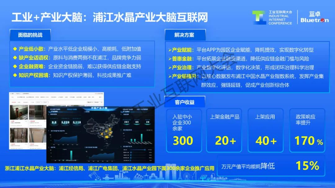 另一方面,隨著國際產業形勢的變化,來自于產業鏈、供應鏈協同和共享的數字化需求越來越強烈。依托工業操作系統實現強鏈補鏈,也是藍卓的重點方向之一。目前,藍卓重點參與了包括化纖產業大腦、光伏產業大腦、服裝產業大腦、襪業產業大腦、水晶產業大腦的建設。通過產業大腦操作系統的形式拉動整個產業鏈的資源,探索包括共享設計、共享質檢、產能匹配、訂單撮合、供應鏈協同在內的各種創新模式。