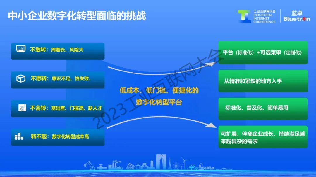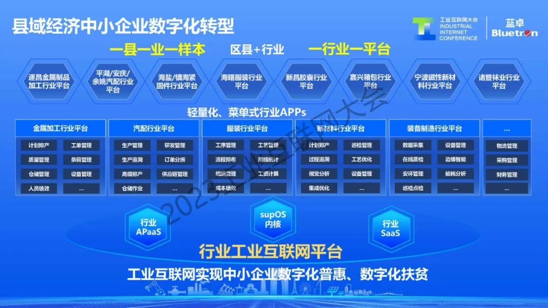 基于這種輕量級、菜單式、云上SaaS化的訂閱式應用,降低中小企業使用數字化基于工業互聯網的方式?,F在正在長三角、珠三角推進一縣一業一樣本,一行業一平臺的區域經濟中小企業數字化轉型方式,實現中小企業的數字化普惠。
