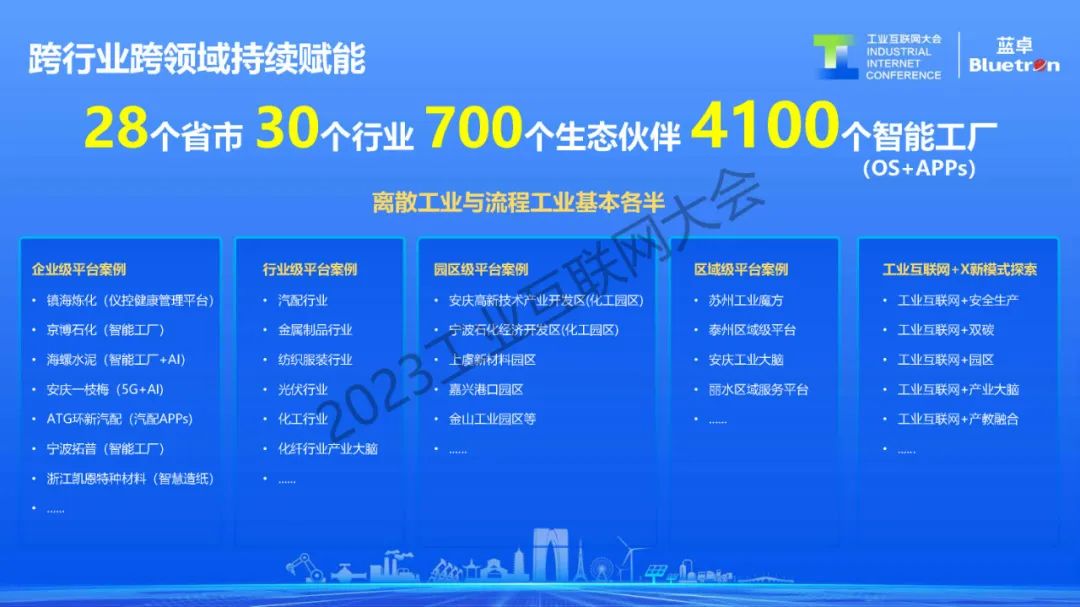 6月14日,在2023工業互聯網大會“工業互聯網助力企業數字化轉型高端論壇”上,藍卓數字科技有限公司CEO譚彰發表《數字工業新引擎 讓工業智能更簡單》主題演講。譚彰表示,早在2017年,藍卓便率先發布中國首個自主知識產權的工業操作系統——supOS。六年來,藍卓深耕行業,不斷提升平臺的厚度和深度,在各行各業規模化應用,不斷提升覆蓋業務域的廣度。目前,藍卓已在全國28個省市,30個行業,打造了4100多個新型智能工廠。其中,雅戈爾、鎮海煉化、海螺水泥評為國家級“數字領航企業”,并不斷揚帆出海賦能沙特阿美等國際知名企業。