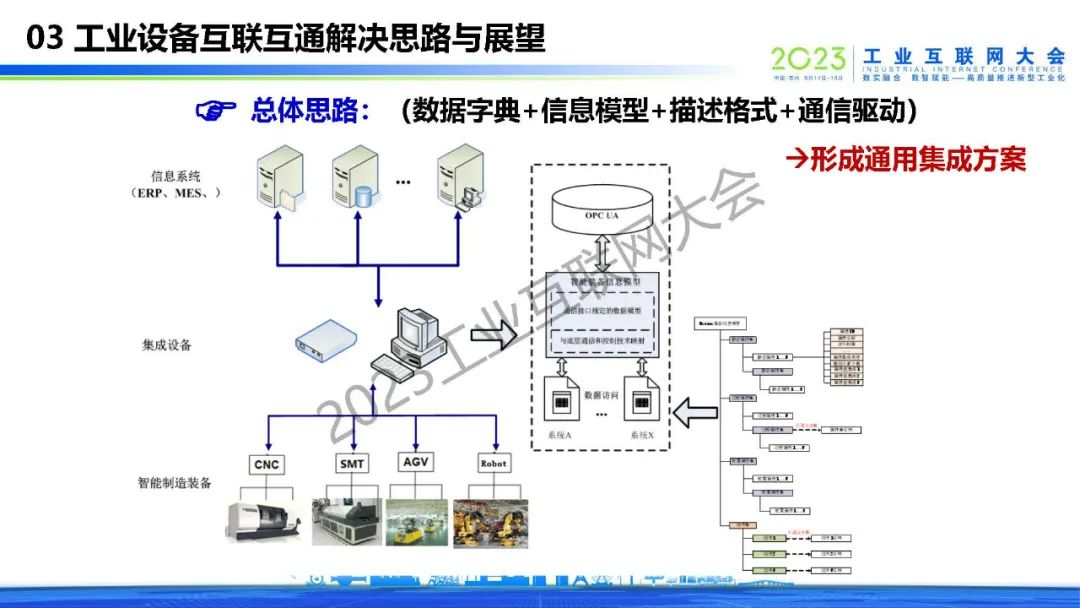 王麟琨表示,現場設備互聯互通是實施智能制造、工業互聯網的基礎,互聯互通包含語義數據互聯互通,是提升工業數據利用率的關鍵。工業設備互聯互通解決思路是數據字典+信息模型+描述格式+通信驅動,從而形成通用集成方案。