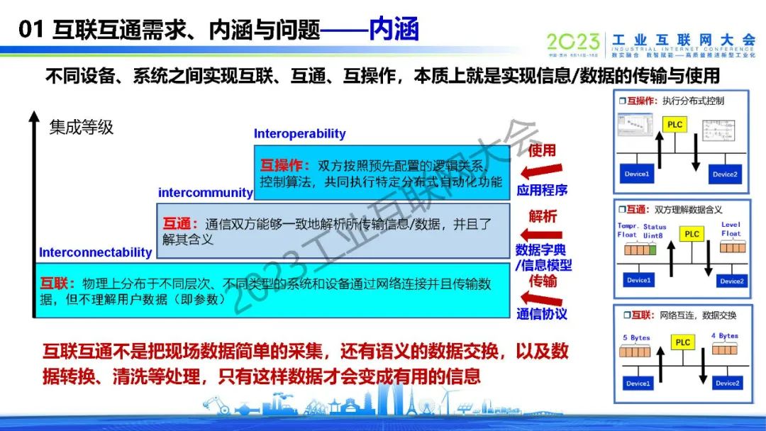 “不同設備、系統之間實現互聯、互通、互操作,本質上就是實現信息/數據的傳輸與使用。“